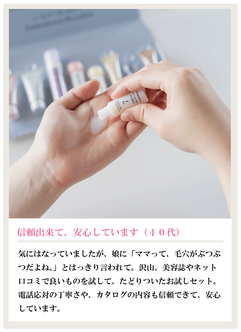 お試しセットが本当に良かったです。やっぱり基礎ケアだな!と。」